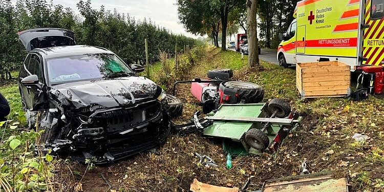 Bei einem Verkehrsunfall im Landkreis Stade ist ein 21-Jähriger schwer verletzt worden. Der Mann aus Bliederdorf war mit einem Trecker und Anhänger auf der K49 unterwegs, als es zum Zusammenstoß mit einem Pkw kam, wie die Polizei Stade mitteilte. Gegen 12:55 Uhr bog der Trecker nach links in eine Obstplantage …