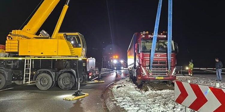 Ein Sattelzug ist am Donnerstagmorgen in einem Kreisverkehr bei Ovelgönne von der Fahrbahn abgekommen und hat die Bundesstraße 211 in Richtung Brake für mehrere Stunden blockiert. Das teilte die Polizeiinspektion Delmenhorst/Oldenburg-Land/Wesermarsch mit. Der 53-jährige Fahrer war gegen 4 Uhr auf der Bundesstraße 211 unterwegs, als er bei winterlichen Straßenverhältnissen im …