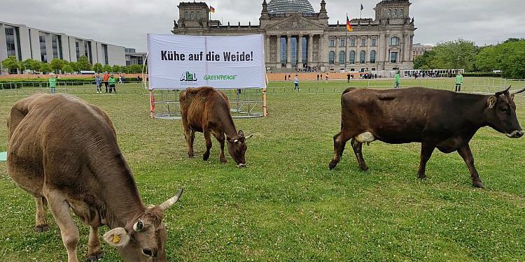 Greenpeace protestiert mit Kühen vor dem Reichstag