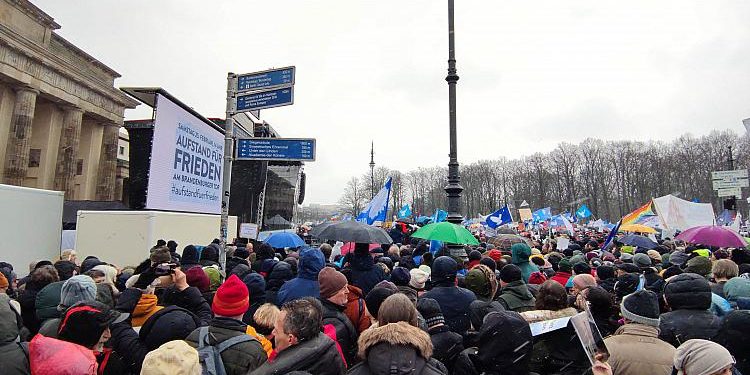 Berlin (dts Nachrichtenagentur) – Mehrere zehntausend Menschen sind am Samstag zu einer Demo gegen Waffenlieferungen an die Ukraine am Brandenburger Tor in Berlin zusammengekommen. Als offizielle Veranstalter gelten die Frauenrechtlerin Alice Schwarzer, Linke-Politikerin Sahra Wagenknecht und der ehemalige Brigadegeneral Erich Vad, die Organisatoren sprachen von rund 50.000 Teilnehmern. „Wir fordern …