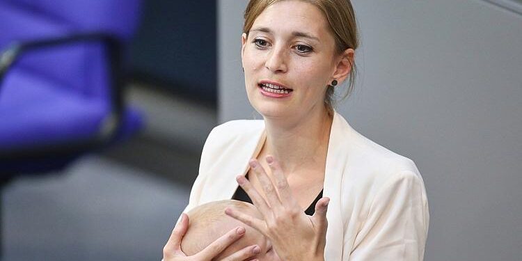 Grünen-Angeordnete hält Rede mit Baby im Bundestag