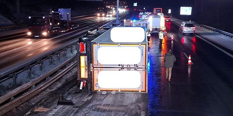 Sattelzug auf A1 bei Sittensen umgekippt – Fahrer verletzt